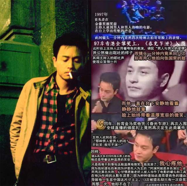 我哥哥张国荣为此付出了巨大的努力。他做得这么好,却没有得到相应的回报,遭受了不公。那年金马奖颁奖典礼上,我哥吃了不少冷嘲热讽。可想而知他遭受了多大的伤害。所以他再也没有和王导合作过,再也没有参加过金马奖。但是现在哥哥休息了,也就没必要再争论了,就让过去随风而去吧,不要再打扰他了。