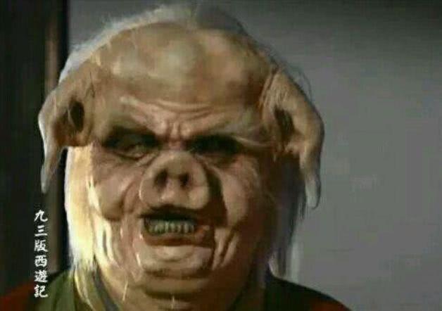 也是在玩猪八戒。首先在国内不用说,因为四大经典小说电视剧《西游记》里的猪八戒可以说是好的,但不能说是丑的。然而日本猪八戒真的很丑。可能是猪吧,导演就安排了这种道具,可以说很吓人。