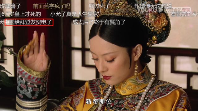 无所不能的“谣言弹幕”甚至可以嘲讽美国大选。皇后在冷宫挣扎:“始皇未废后,此宫仍为皇后”,弹幕为:“川普本普”,宫中状元甄嬛霸气的下一句:“前朝后宫及前朝史书中,将无君之言!”弹幕抛出:“这是拜登。”果然历史差不多。这是东方神秘力量的预言吗?