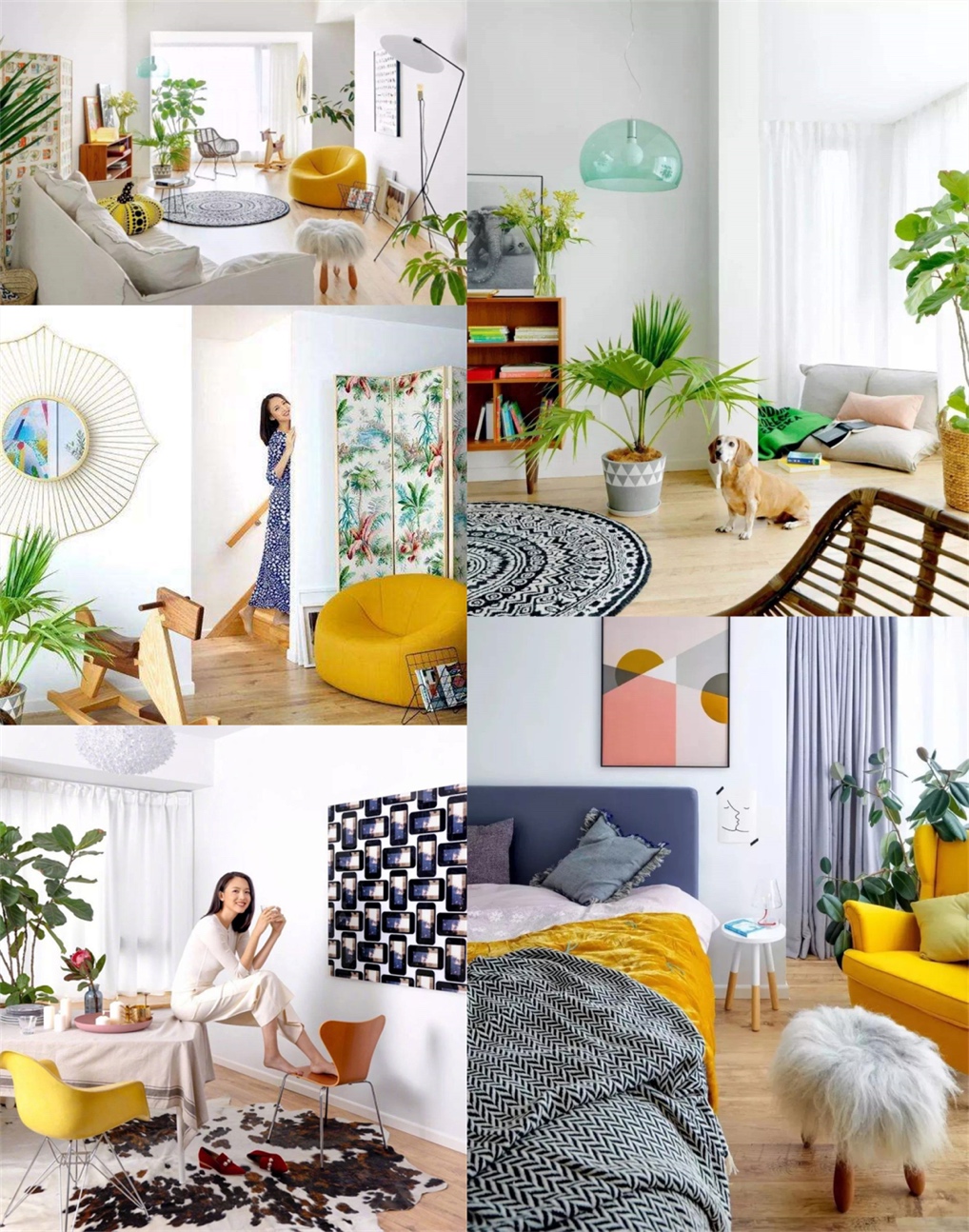 与井柏然相反,艾琳的家非常明亮干净,是典型的北欧现代风格的装修。她家的地板是淡淡的原木色,墙面是大片的白色,整个落地窗也给房子带来了充足的光线。她的家具也很亮,橱柜用原木,沙发用轻薄的亚麻面料,沙发用高饱和度的颜色,让人感觉很活泼。而且她还在家里添置了一些波西米亚风格的藤篮、手工地毯、中式屏风,在一个房间里巧妙的结合了北欧风格,完美。