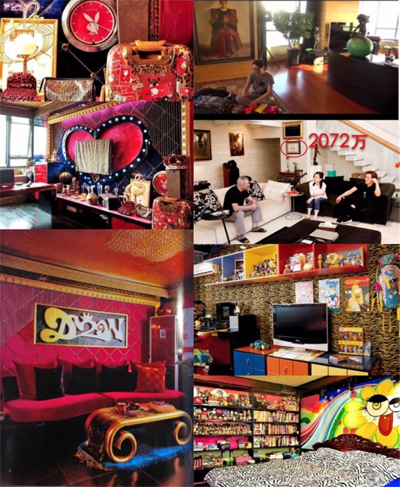 宋丹丹家很复古。落地窗、实木地板、落地灯、超大装饰油画、手工编织东方地毯等。都很复古,有一种艺术家庭的感觉。冯小刚的家里也挂着画,其中一幅据说价值超过2000万元。客厅的颜色以黑白为主,简洁大方。张伟家告诉人家,主人是个豹纹控。东西满满的,颜色满满的,大紫金的颜色有点刺眼。