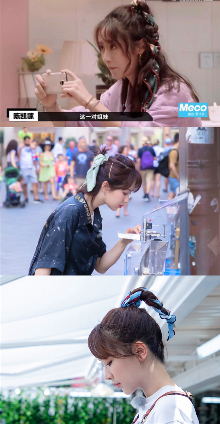 除了宋妍霏,娱乐圈的许多女演员经常可以在综艺节目中看到活动造型、私人服装和组合的丝巾。比如参加《演员请就位》的时候,Fair Xing把丝巾编成辫子,让她们看起来青春、俏皮、美丽。还有《中餐厅》的安迪,不止一次把丝巾缠在马尾上。