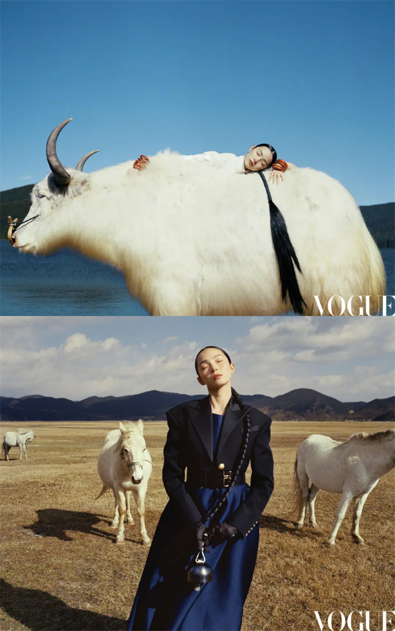 纵观杂志电影,我们可以看到雎晓雯穿着不同的服装出现在香格里拉各地。但是,她和香格里拉之间的一切,似乎都自然而然地属于一个身体,看起来无比和谐。比如穿白裙子,她和牦牛靠得很近,看起来圣洁自然。顶级超模和顶级杂志的结合震惊了网友。他们不禁感叹‘先进’,评价‘《VOGUE》赢了很多’。