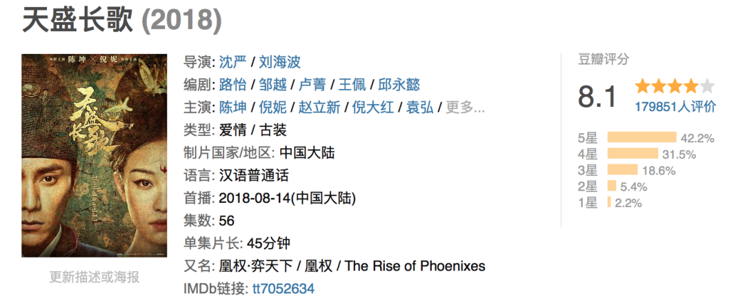 翻开倪妮的电视剧作品集,发现她参演过的大都是口碑剧:《天盛长歌》豆瓣评分8.1,《宸汐缘》豆瓣评分8.3。质感不俗、求质不求量、挑剧眼光在线……这大概是演员倪妮的特征。