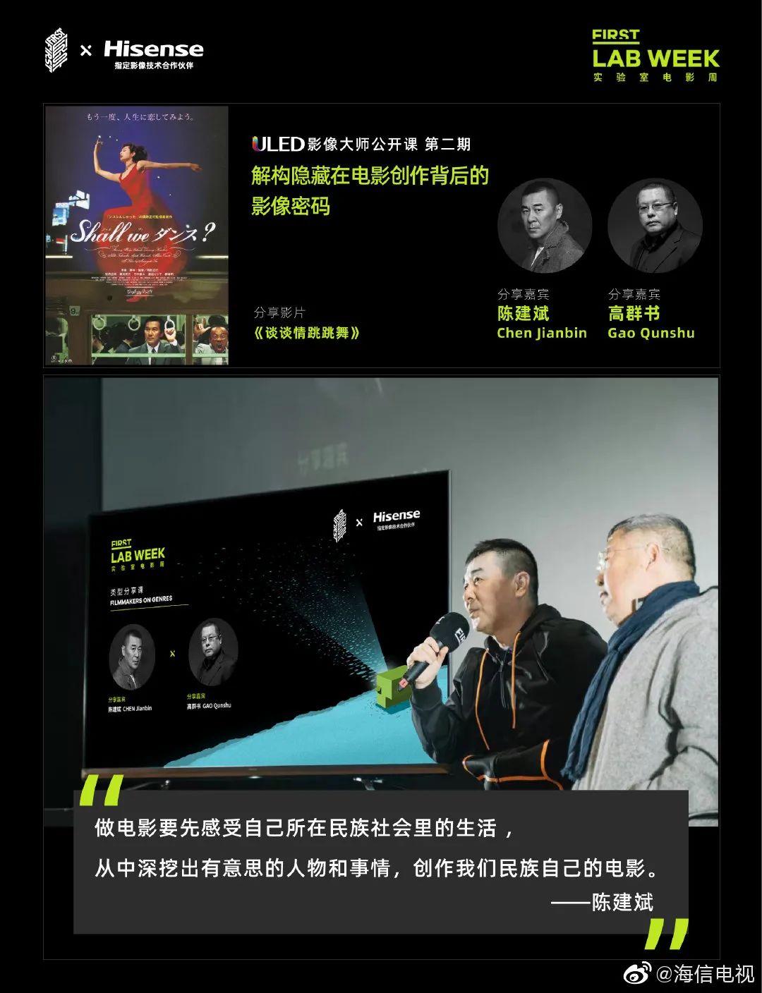 这次的年末影展已经不是海信第一次涉猎影视圈,此前海信与FIRST影展合作,在影迷见面会及评审会等重要场合提供了全链条的放映支持。同时,海信还联合影视圈专业人士,打造了海信ULED影像大师系列公开课,从多维度对影视作品的呈现进行深度解读。