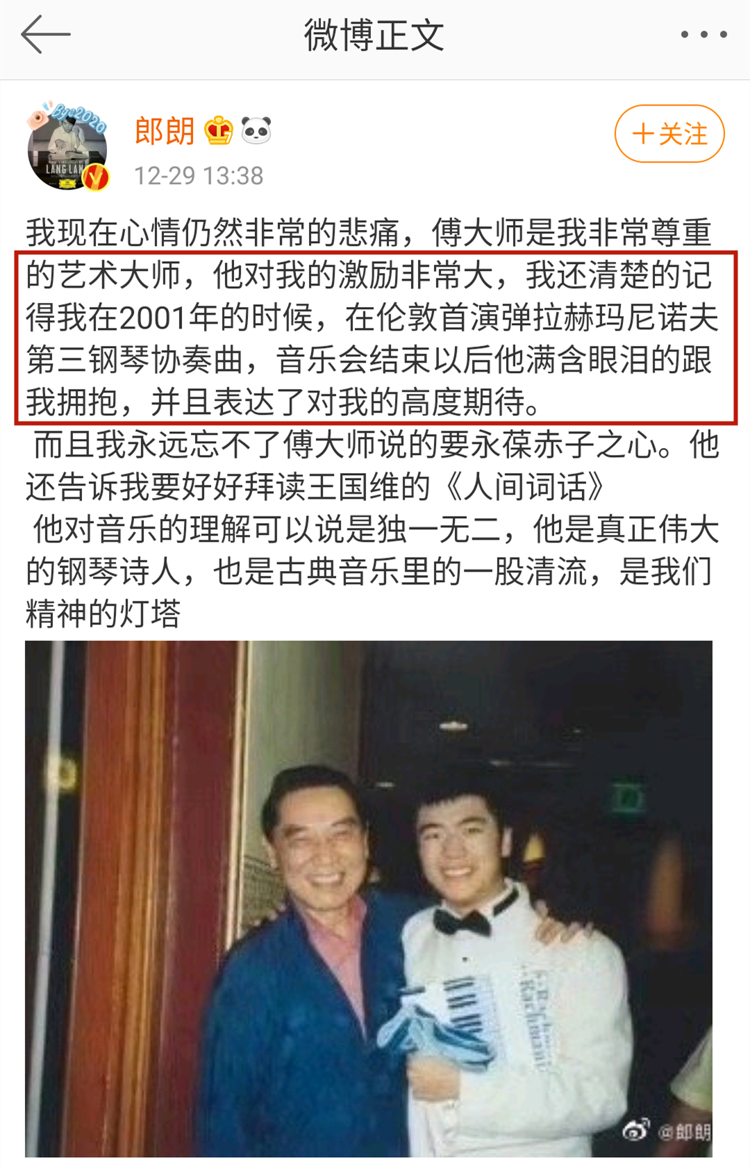 钢琴家傅聪的去世引起了人们的哀悼,但网民说朗朗凡尔赛狄云是真诚和浪漫的
