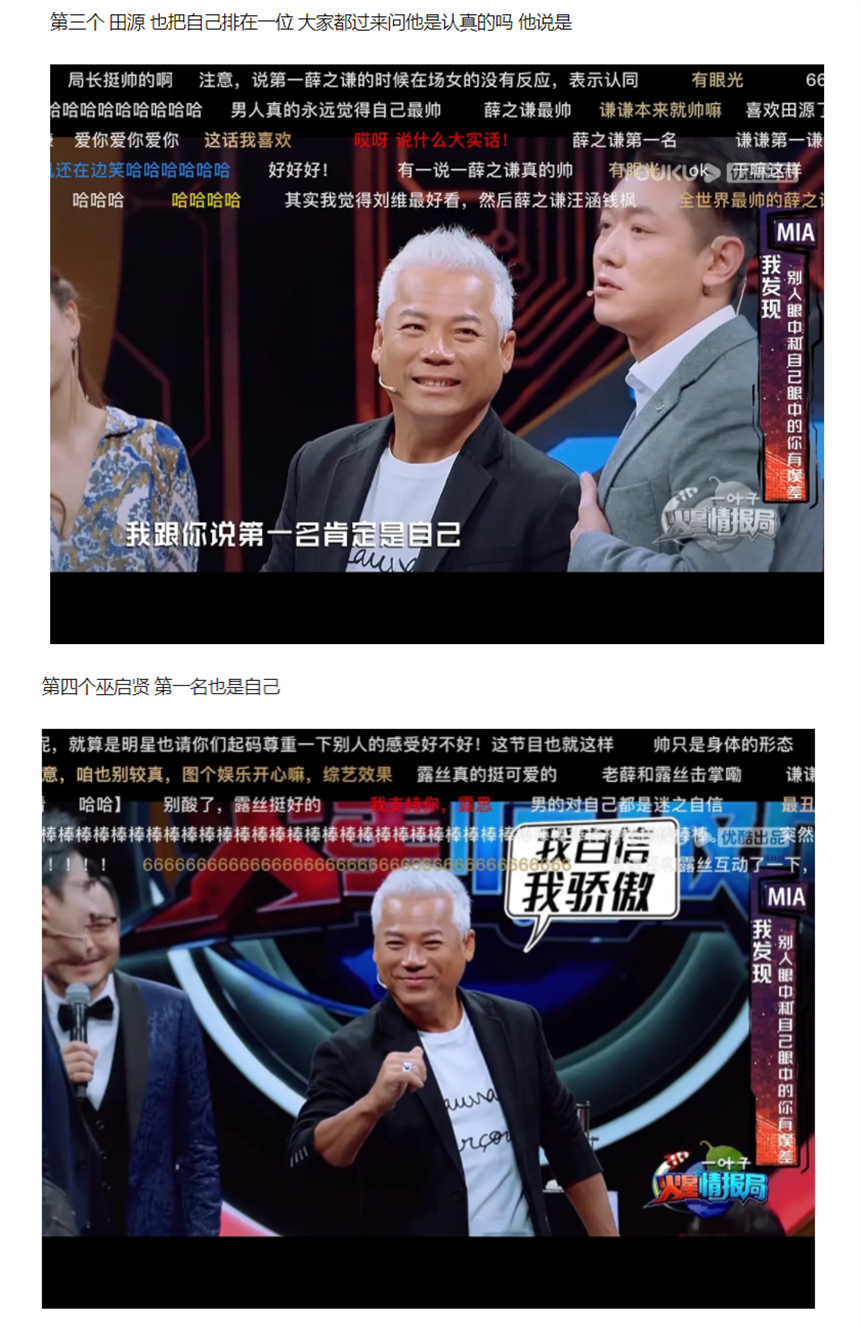 当节目要求在场的每个人为自己的颜值排序时,钱枫将自己排在了第一位,也就是他认为自己是当天在场的所有男性颜值之最。网友吐槽道,要是年轻未发胖时的钱枫,他自然是颜值No.1,可是如今发胖的他怎么敢说这种话?当然了,钱枫也有可能是为了节目效果,所以才这样说。