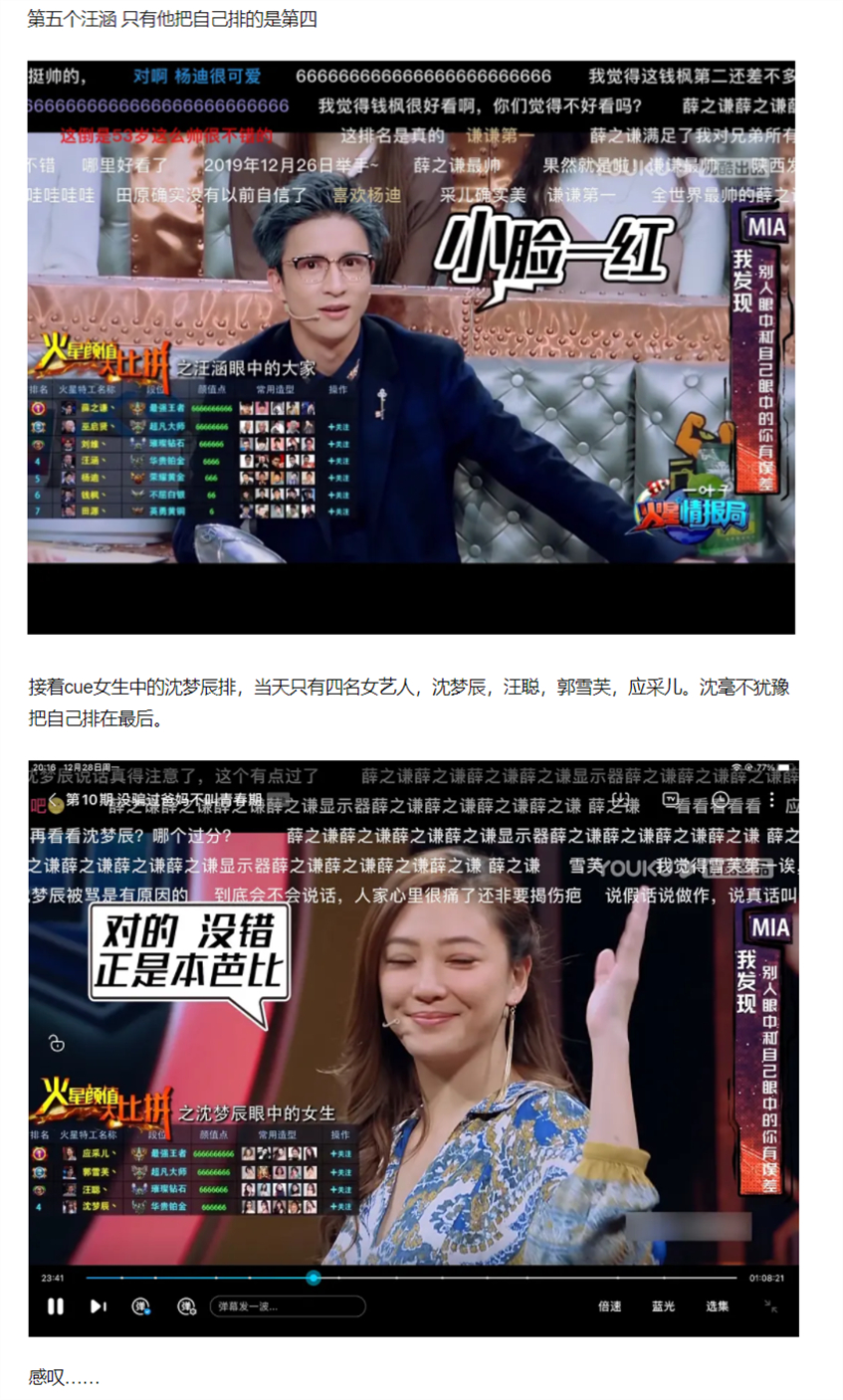 但其实钱峰是无辜中枪的。回头看节目,可以发现说赵露思双下巴的是汪涵,两人关系挺好的。赵露思没有表现出被冒犯或不高兴的样子。赵露思听后笑着说,钱峰的双下巴更严重。