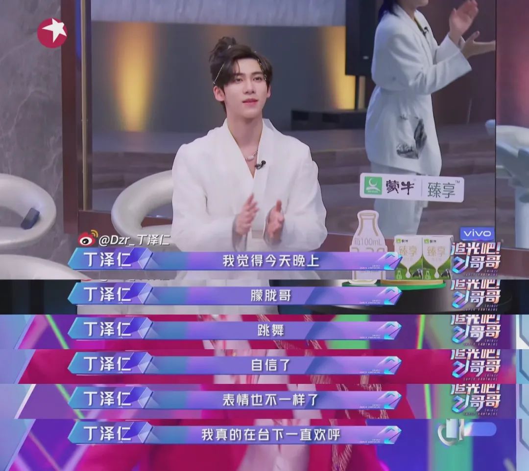 连男团舞担出身的丁泽仁都夸赞于朦胧的舞台表现,肯定了他的进步。
