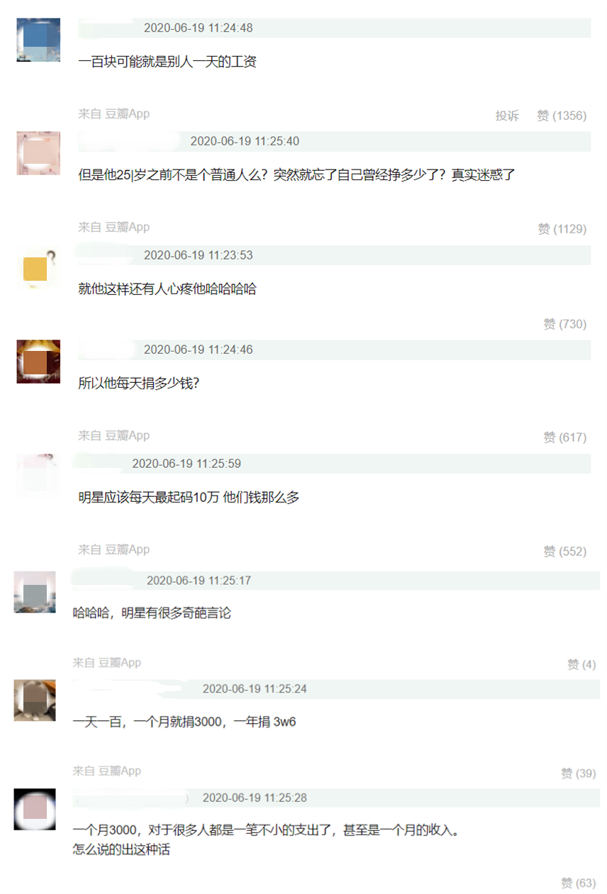 有网友反驳说,一百块钱大概是别人一天的工资。有网友觉得他的发言很混乱。毕竟肖恩肖入行前也是个普通工人。他是怎么突然忘记自己一天赚了多少钱的?有网友吐槽,说明星赚这么多,每天要捐10万。有网友质疑问:他一天捐多少?