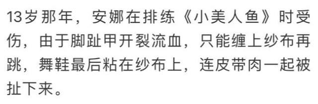 排练芭蕾舞时,当时只有13岁的姚安娜意外受伤,但仍坚持要完成演出。