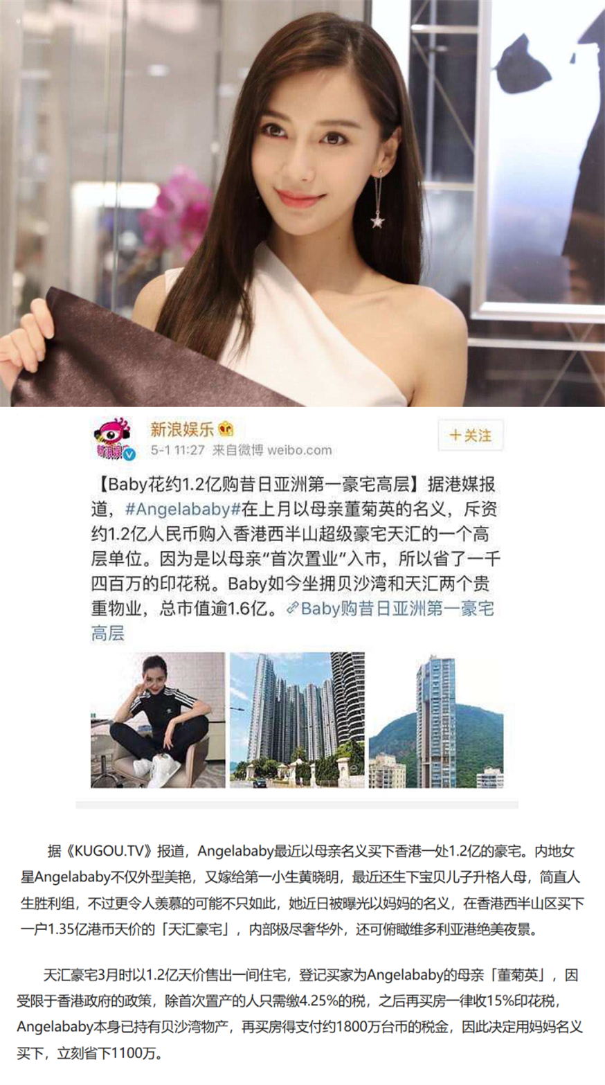 前面说过,香港有几千万的房子,但是还是有很多明星喜欢去香港买房,比如杨颖杨颖。也许因为杨颖是在香港开始她的职业生涯的,她对香港有着特殊的感情。三年前,杨颖花了1.6亿元在香港购买了有价值的房产。仅香港西半山区的房产就价值1.2亿元,在网友中引起轩然大波。