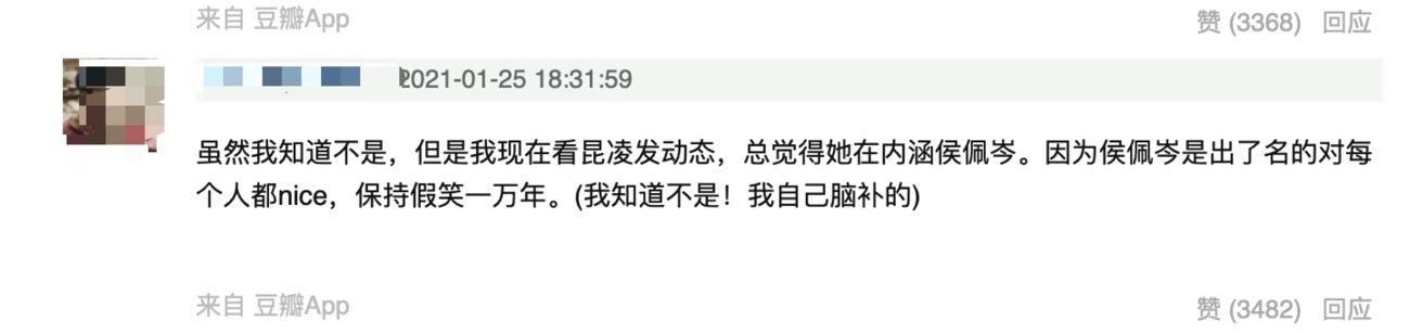 毫不奇怪,昆凌的回应遭到了网民的嘲笑。原因是这篇短文太土了,有小学生说QQ空间的味道。而昆凌自称大姐,这个说法也很土。除了文字,昆凌的回应也遭到网友质疑,而且是侯佩岑的内涵。侯佩岑以前被一些人批评过,对每个人都傻笑,但这只是侯佩岑的职业习惯。昆凌说起话来好像和侯佩岑不一样,不需要一直微笑。因此,很多网友认为昆凌真的很平淡无奇。