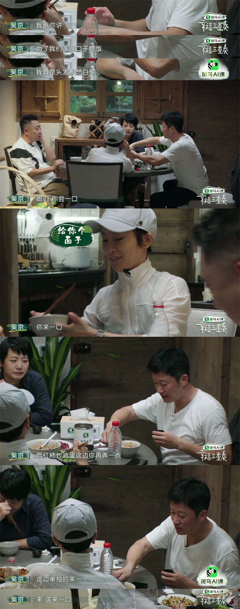 当伊奥拉在节目中演唱时,吴京非常支持,情不自禁地用脚鼓掌。吴京也担心伊奥拉的饮食问题,她担心她不会为了减肥而吃东西,她会饿着肚子伤害自己。因此,在餐桌上,吴京就像一颗老父亲的心,告诉他的妻子用不同的方式吃饭。