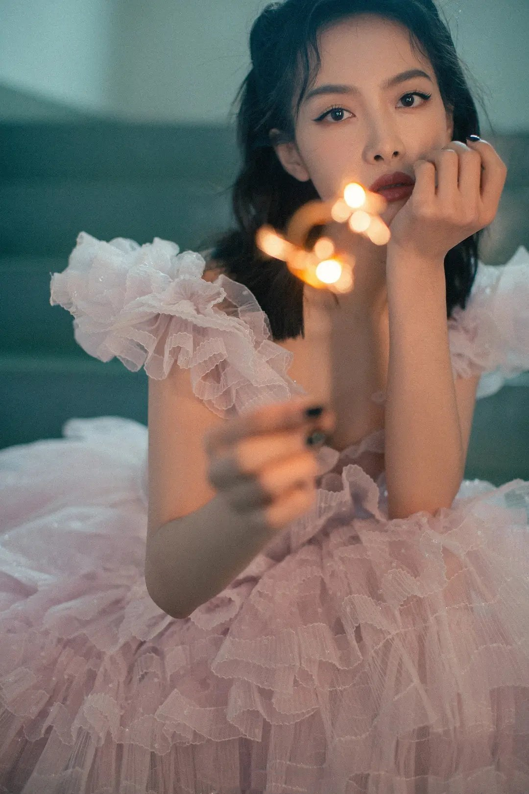 最近,宋茜出现了一组以烟火棒为主题的电影。照片中,她穿着浅紫色蕾丝裙,充满少女气息。宋茜的表情很冷,与甜美的裙子形成对比。虽然味道有些不同,但人和事之间似乎没有联系。因为宋茜这一批大片主要强调‘人’,不强调‘风景’,所以这款烟火棒在宋茜的照片中并没有太大的存在感,只是增加了一点光影。