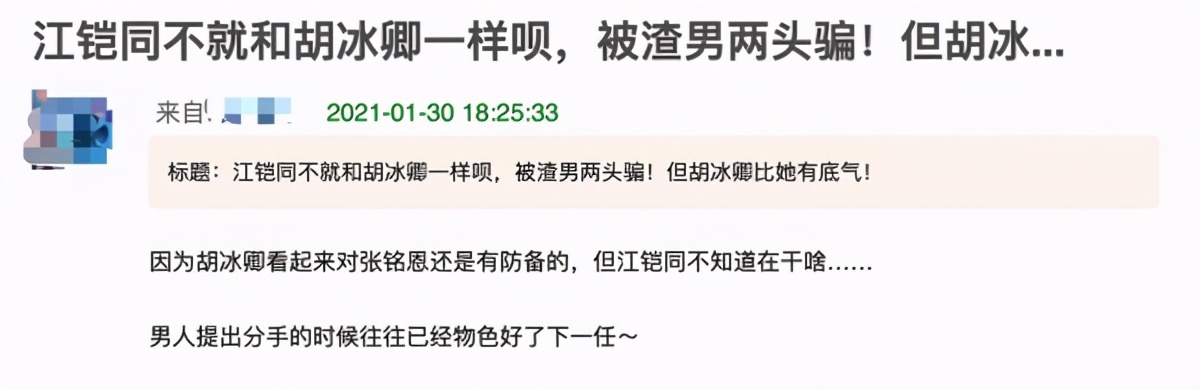 当然,此事的真实情况需要三方进一步回应。但对肖恩来说,两头出轨也不是不可能,张明恩被怀疑做过这种事。那一年,胡冰青还指责张明恩两头出轨,导致胡冰青大三,而徐璐被网友同情。如果有这样的先例,当然有网友认为Kiton说的值得考证。