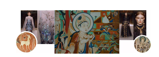 北京服装学院教授刘元风对敦煌服饰的色彩与纹样如数家珍,将敦煌壁画、彩塑之上闪耀千年的东方的服饰之美糅合进时装设计,“华戎所交,一大都会”,让敦煌这种拥抱世界的大美在如今的中国时装中呈现出来。
