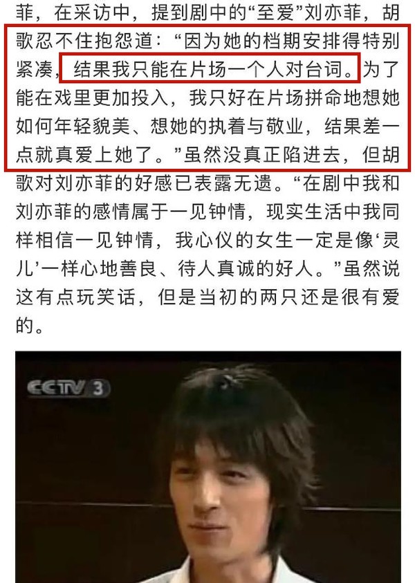胡歌在采访中也曾透露,刘亦菲的档期特别紧凑,自己只能在片场一个人对台词。而对戏见不到人,刘亦菲有多好,胡歌只能靠想象。还有,当时刘亦菲的母亲全程跟组,“早恋”的事情怎么可能会出现!更何况时年大学生的胡歌,与高中生的刘亦菲的确也没有什么共同语言。