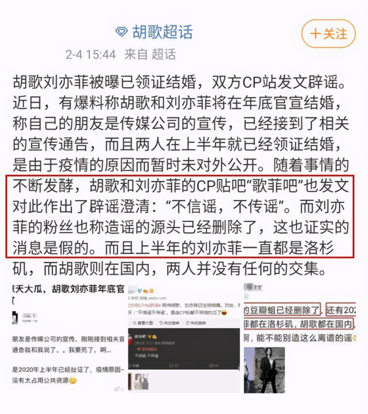 在“格非”结婚的谣言小规模发酵后,两人最大的cp头目“格非吧”迅速发出谣言,呼吁广大网友不要相信谣言,不要传递谣言。路人网友听到结婚传闻也是一脸MoMo。大家都觉得休和刘亦菲不可能。毕竟他们几百年没联系了!