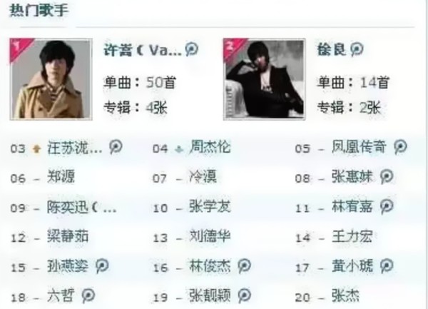 网友一边感慨,一边回忆当年称霸榜单的歌手。于是,由来已久的“QQ音乐三巨头”称号再次被网友提及。年轻听众可能不知道自己是哪一个“三巨头”。毕竟这三个人只属于80后,只属于“埋没爱情时代”。他们是瓦伊、许亮和沉默王。