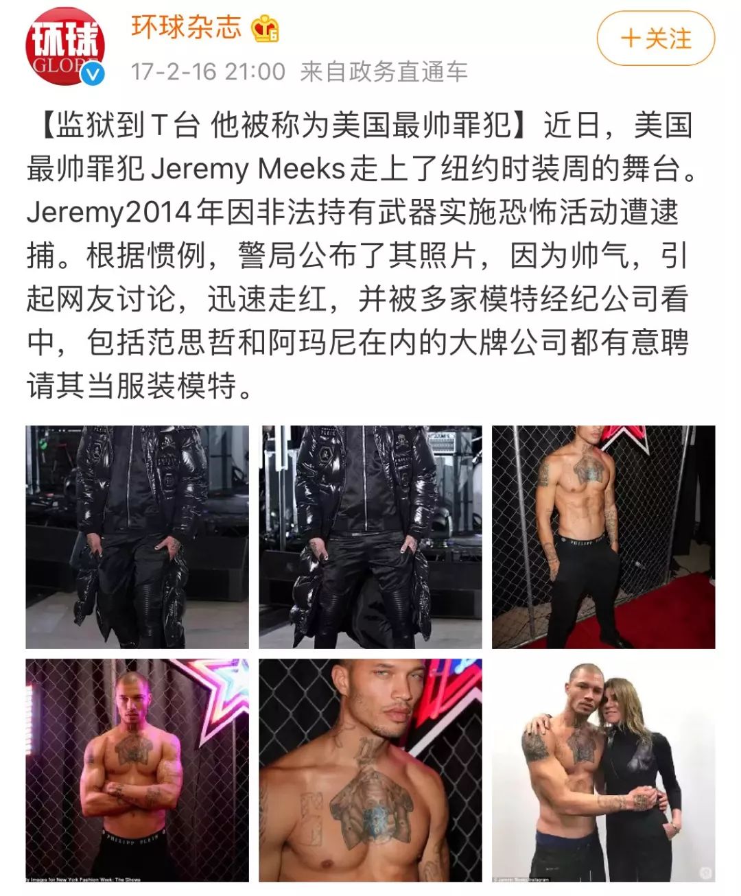 又比如美国某罪犯,因警局公布的照片过于帅气,出狱后成为了一名模特,成功牵手白富美,登上纽约时装周。