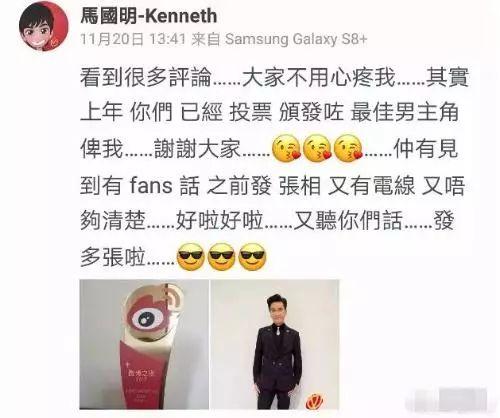 说起来,马国明是TVB中家喻户晓的男明星,入行20年,出演了《冲上云霄》在线观看(✪ω✪)、《On Call36小时》等众多热门剧集,在2016、2017、2018年连续三年获得了最受欢迎电视男角色奖。提名视帝12次,却始终陪跑。连马国明自己都发微博安慰粉丝。好在今年终于打破命运束缚,成功摘下影帝桂冠,实至名归。