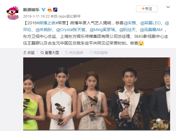 可以说,整个2017年下半年至2018年全年,鹿晗和关晓彤的曝光率蹭蹭蹭如“坐火箭”般的速度,关晓彤也在2018微博之夜盛典中拿下了年度人气艺人的殊荣。
