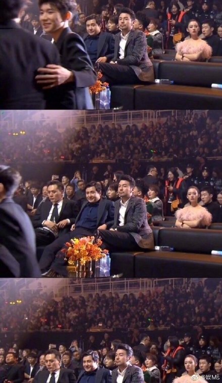 在上台颁奖的过程中,三小只路过三大只。只见背后沈腾,雷佳音,刘烨三人表情、动作简直神同步,内心os:“难道我们没有过花样年华吗?曾经我们也这样。”