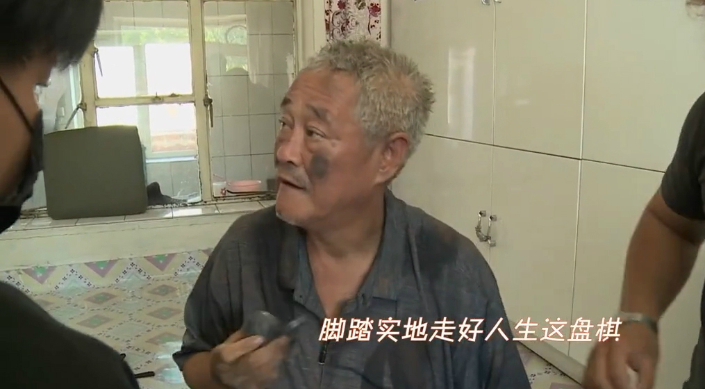 值得注意的是,赵本山老师在《走好人生这盘棋》当中,穿着质朴,很多装扮都确实是地地道道的农民形象。而在歌曲当中,有一个画面,是儿女们给赵本山大叔洗脚,老赵穿着倒带背心,一身赘肉,明显呈现了衰老的状态。而在歌曲的最终部分,本山大叔走到瓢泼大雨当中,非常狼狈,而扮相,也是极尽了农村老农民的气质。