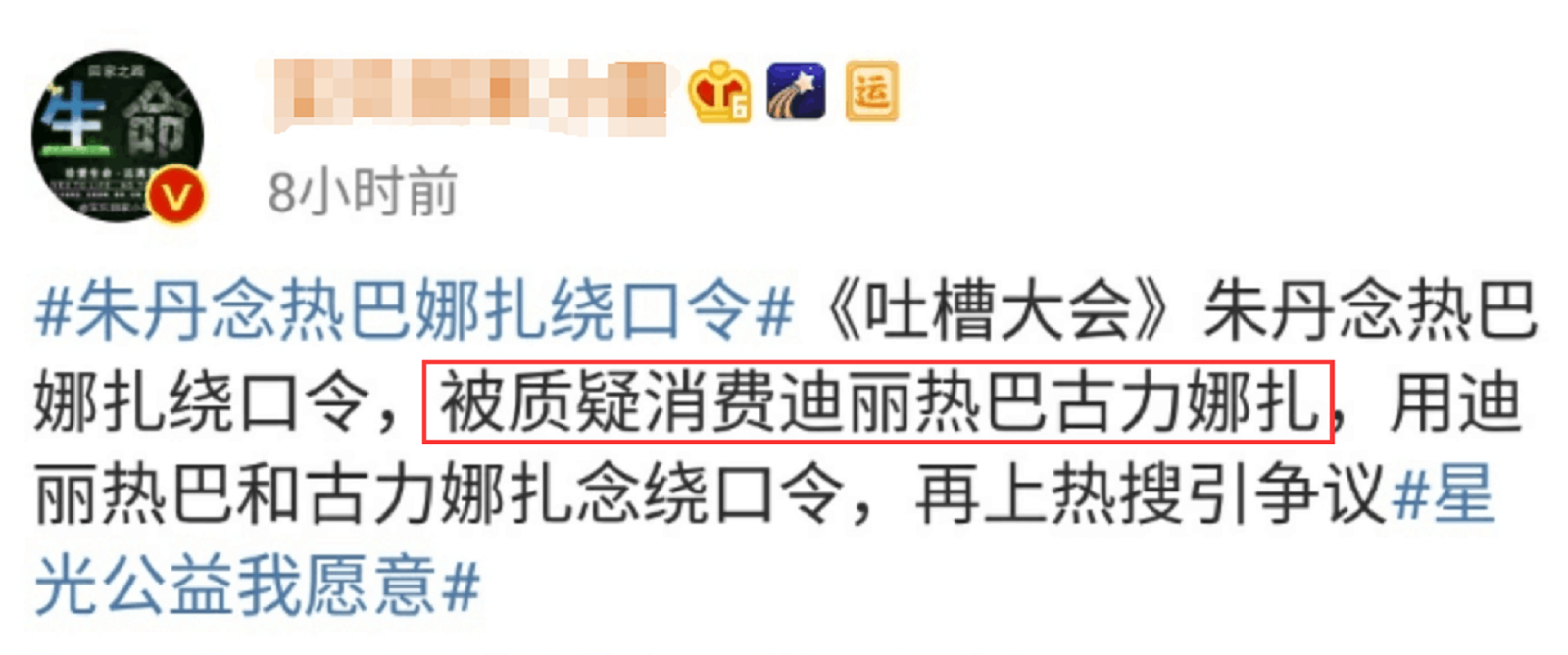 这两天朱丹因为主持水平被大家质疑的事情来来回回上了好几次的热搜,而昨天朱丹又参加了《吐槽大会》在线观看(✪ω✪)这档节目!本来《吐槽大会》的规矩是只能吐槽场内的人,不能吐槽场外的人,没想到朱丹居然在《吐槽大会》上直接带了并不在场的迪丽热巴和古力娜扎的名字。