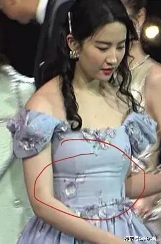 经过网友们火眼金睛的搜查,发现刘亦菲穿这身裙子已经有“肉挤出褶皱”的现象。