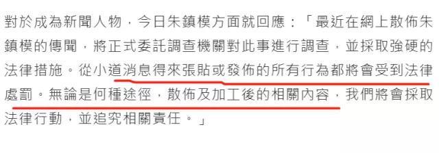 朱镇模方对于此事回应称,已经正式委托调查机关对此事进行调查,将采取法律措施。针对任何途径散步、加工后的相关内容,都将采取法律行动并追责。