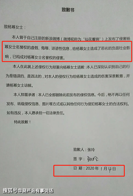 1月14日,有网友在社交平台上晒出了案件的结果,表示当初造谣杨幂被潜规则的被告,已经在社交平台上进行道歉了。在致歉书中我们可以看到,被告在声明上清楚写着: