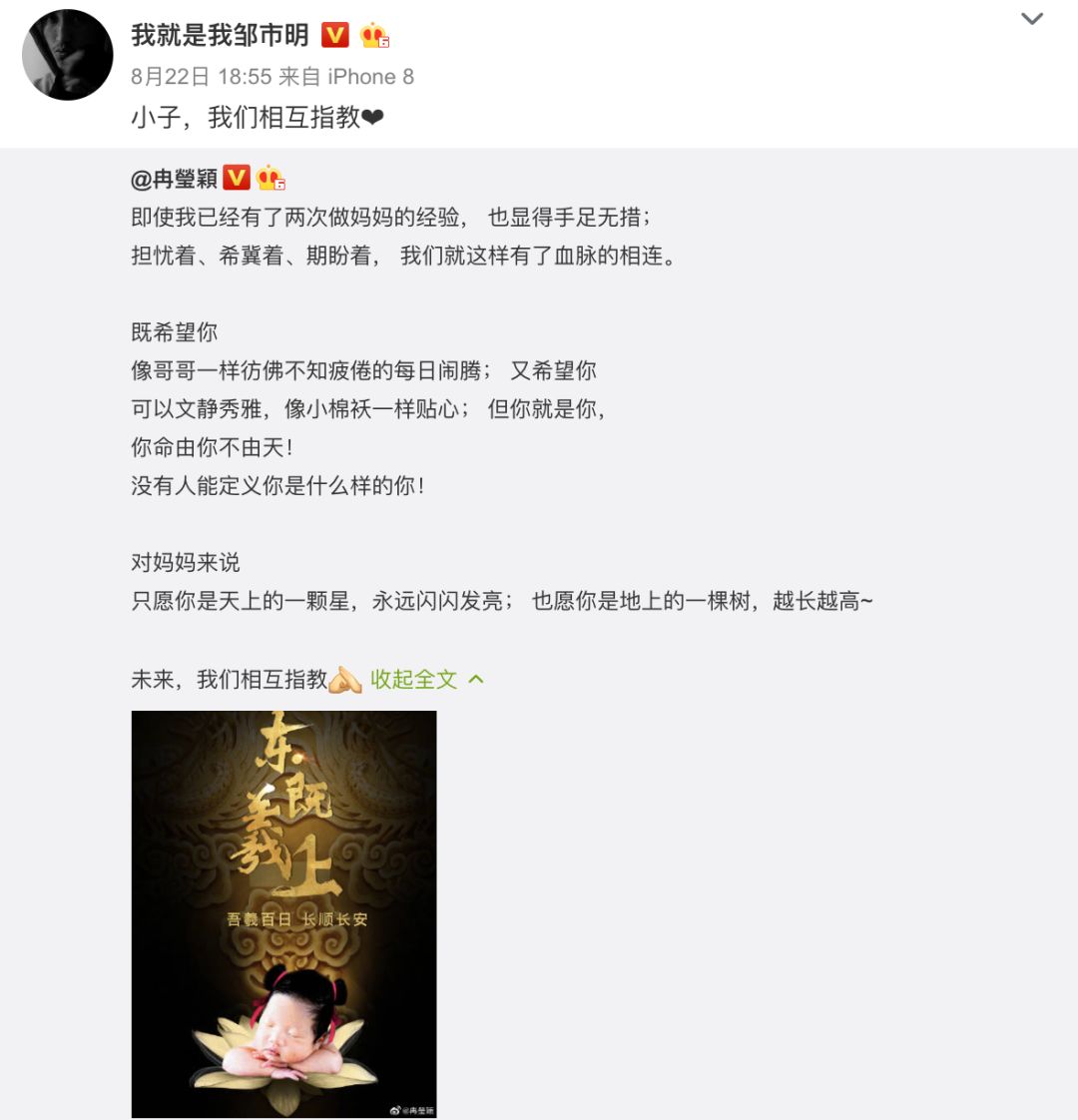 几分钟后,余文乐又在ins上晒出了一组照片,大方官宣王棠云怀上二胎的消息称:“这是我父亲节的礼物”,并配了四个表情意思是,爸爸+妈妈+大儿子+小儿子等于一颗心。就是最后这个小婴儿的表情,似乎暗示着王棠云二胎又是个儿子。