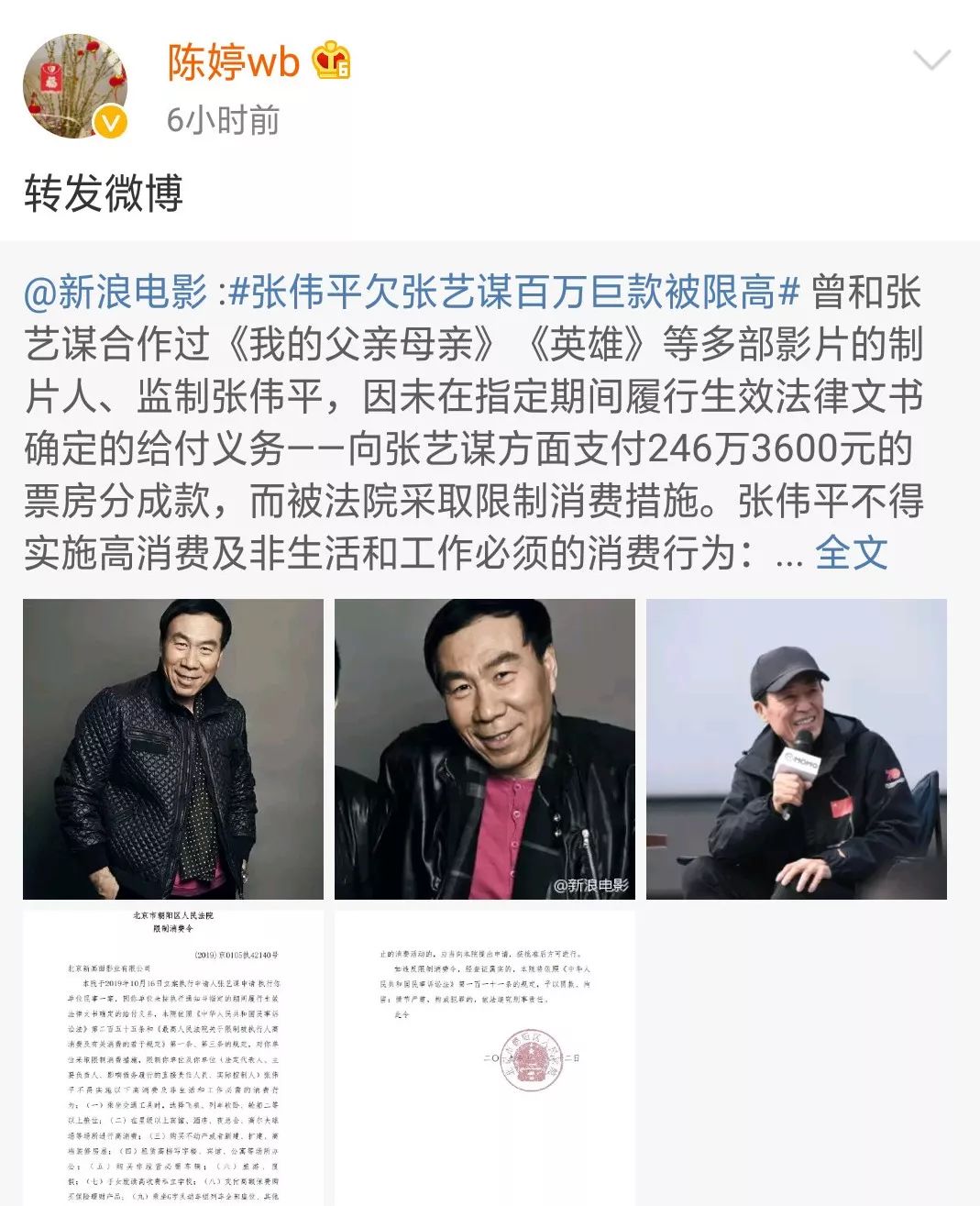 张伟平对张艺谋有痴迷的掌控力,两人的利益牵扯真的是蛮大的,有爆料称张艺谋超生的消息就是张伟平放出来的,而张伟平曾为张艺谋的孩子办户口都是亲力亲为,因为与张艺谋的关系濒临崩塌以此来加持,但却成了压垮两人关系的最后一关。陈婷作为张艺谋的妻子一直没有名分,孩子也不敢轻易呼喊张艺谋爸爸,让陈婷一度泪洒屏幕前。本次胜诉陈婷立即转发支持,有种扬眉吐气的既视感。