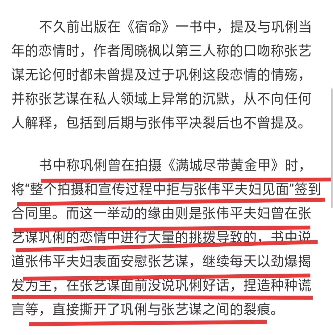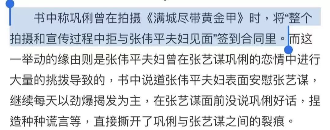 主角争议是难免的,但让两人的关系到冰点却另有原因,那就是巩俐!在《宿命:孤独张艺谋》中曾提到张艺谋与巩俐再次合体拍摄《满城尽带黄金甲》的时候巩俐在合约上加了一个条件那就是不见张伟平夫妇,而张伟平竟然同意啦!按照以往张伟平怼天怼地的个性面对巩俐“不太尊重”的条约却没有脾气,着实让人好奇。
