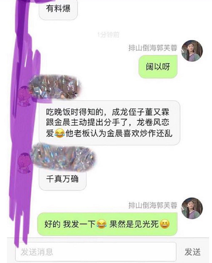 后来,有网友爆料称董又霖是听了经纪公司老板的话,才选择与金晨分手。因为,他认为金晨爱炒作。不仅如此,董又霖的老板还先后多次在微博上内涵金晨。当时,很多网友表示心疼金晨,遇到了一个没有担当的男人,还要被他的老板公开嘲讽!