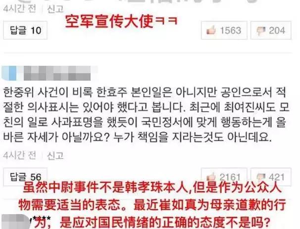 同时网友还发现,韩孝周从2007年开始就是空军形象大使,2010年还担任国税厅形象大使,加上父亲、弟弟都有任职,更加怀疑事件真相被掩盖。