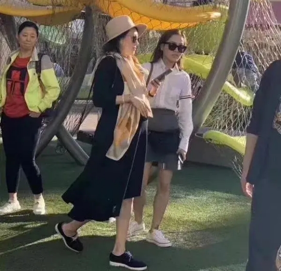 在美国待产的章子怡生活闲暇,曾有网友在美国偶遇章子怡遛弯,孕周期较大的她身穿黑色宽松长裙脚踩平底休闲鞋,一条丝巾加以搭配显得格外美丽吸睛。