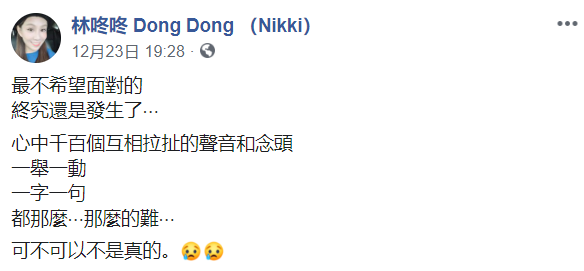 这两天,林咚咚也是在社交平台上连续发文,伤心难过的心情溢于言表