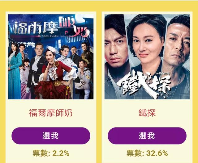 在这次投票中共有12部电视剧参选,惠英红的《铁探》以32.5%的票数高居榜首,超第二名10.5%。