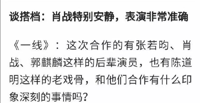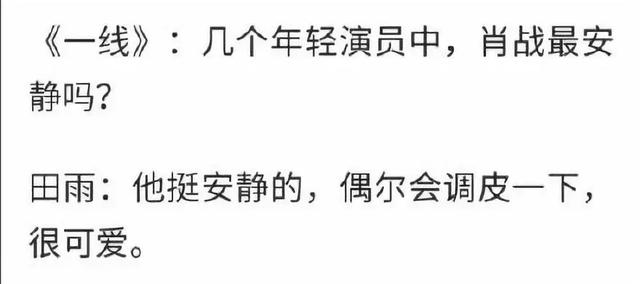 另一位“王启年”的扮演者田雨也对肖战的评价很高,说肖战非常可爱,在现场一直安静地在准备自己的戏,而且指出他“演得非常准确”,也是对肖战的演技给予了肯定。