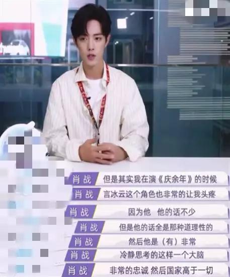 而且肖战说言冰云“话不少,但全是讲大道理的,他有非常冷静思考的大脑,非常忠诚,认为国家高于一切”。可见,言冰云的人物形象在他心底有深刻的烙印。