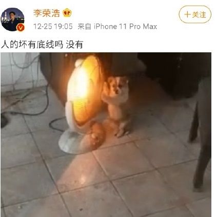 李荣浩此次发的动态图,有网友认为李荣浩这是怒批虐待动物者,从图中看是一只小狗被强制取暖,所以让很多网友觉得很愤怒,反对这种虐待动物的行为。