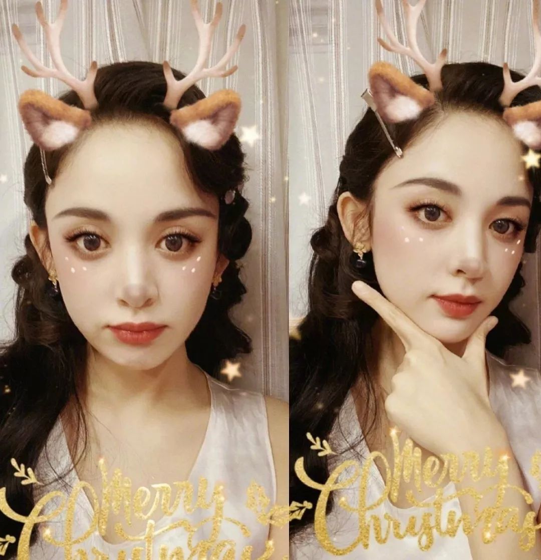 大美女古力娜扎走的却是甜美少女风,她在娱乐圈的颜值一直是无可挑剔的,相机的圣诞贴纸反而让她少了一些美颜多了写可爱,尤其是鼻尖小小的麋鹿鼻子,整个人显得又甜又可爱。