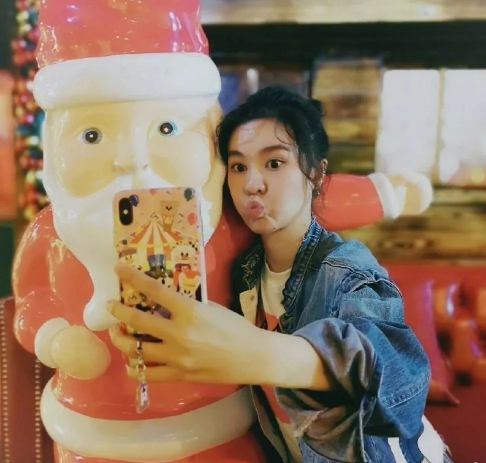 郁可唯也晒出了自己跟圣诞老人的合照,,睁大眼睛嘟嘴卖萌的她似乎跟舞台上那个唱着动人情歌的主题曲小天后有着很大的差别,小女生气质十足。