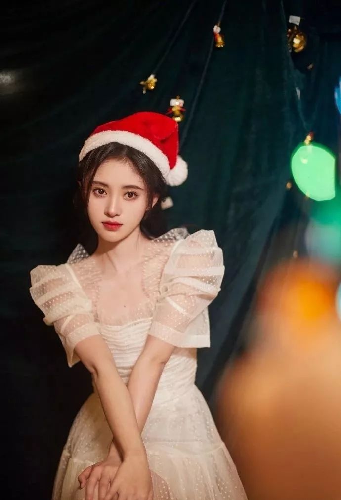 鞠婧祎的甜美风从未失过手,穿着白色的纱裙带着可爱的圣诞帽,乖巧的坐在椅子上的她,特别楚楚动人,让人忍不住姨母心爆发。
