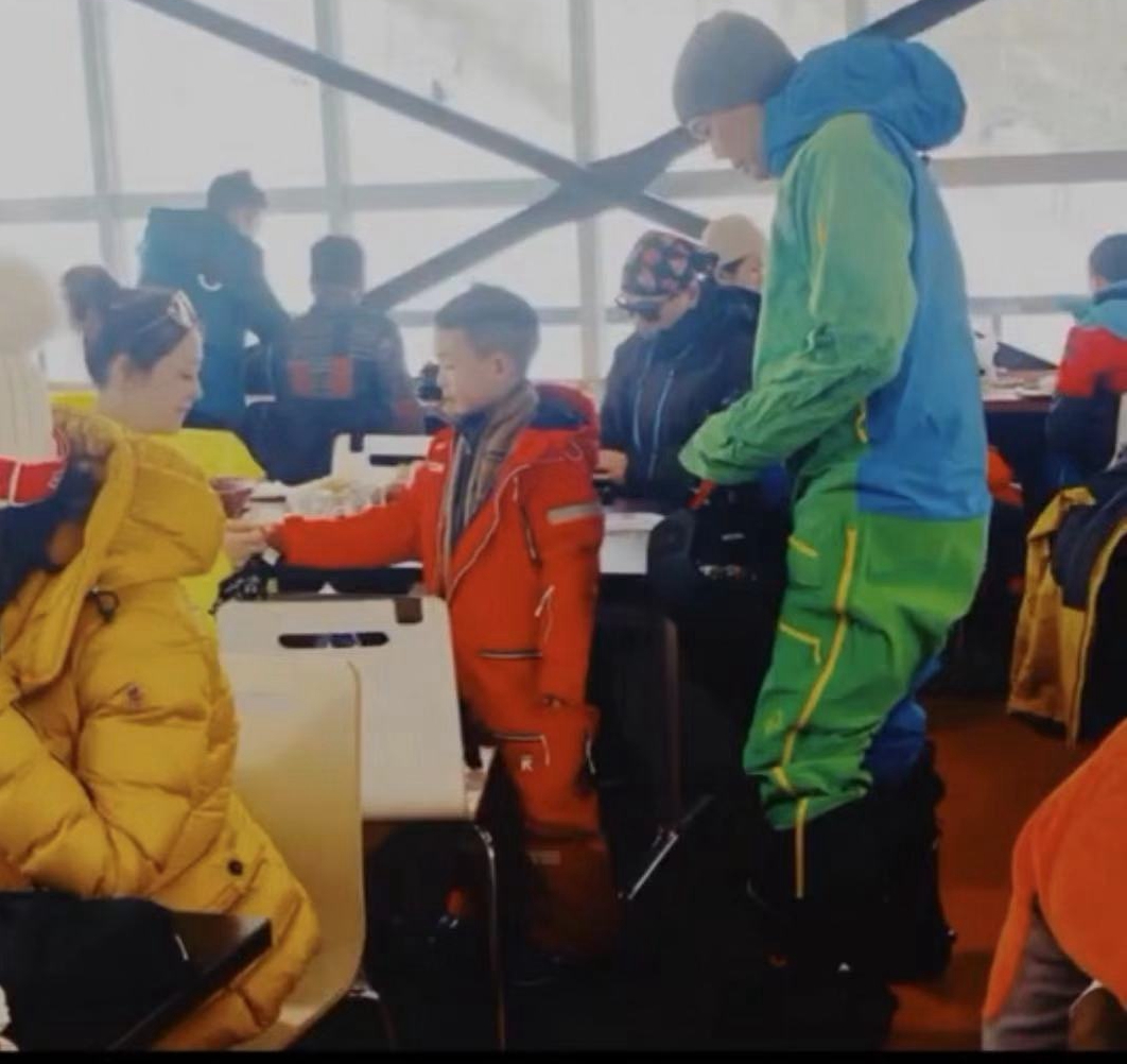 现场应该是休息区,很多滑雪的游客坐在里面吃东西,陈小春与谢天华都是“古惑仔”成员,两人不但是兄弟,就连他们的妻子也成了好友,一家人经常出外旅游。