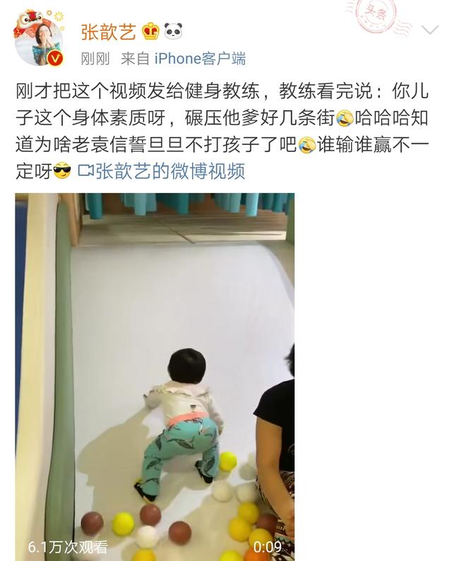 张歆艺称儿子是运动健将一点儿都不为过,除了会走之外,爬行速度也超快,就连健身教练都夸四坨身体素质好,碾压他爹好几条街!