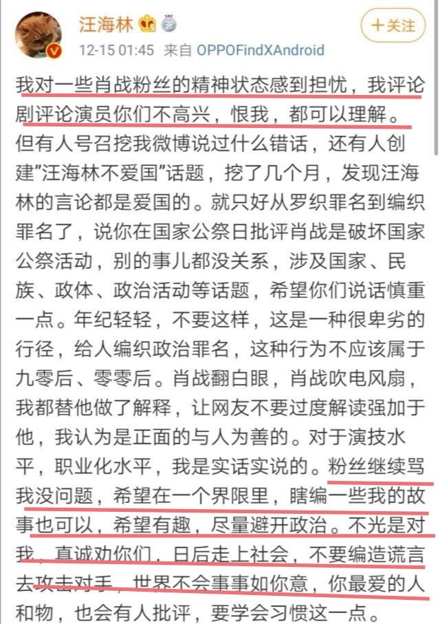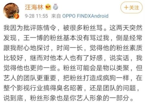 但汪海林接受采访的时候,一度对“流量”群体进行人身攻击。